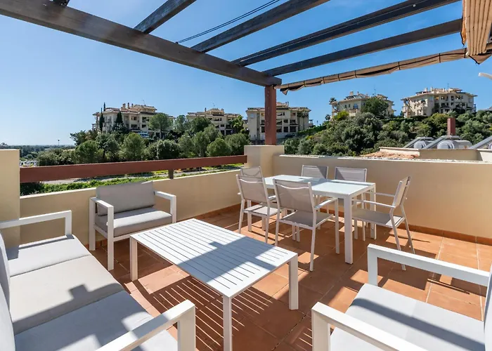 Die Ferienwohnung Ribera Luar Penthouse 2459 Estepona liegt in rund 2 km Entfernung von der Höhle de la Gata und bietet einen Swimmingpool. Von einer Terrasse aus können die Gäste des Apartments einen Küsten- Blick aufs Meer genießen.